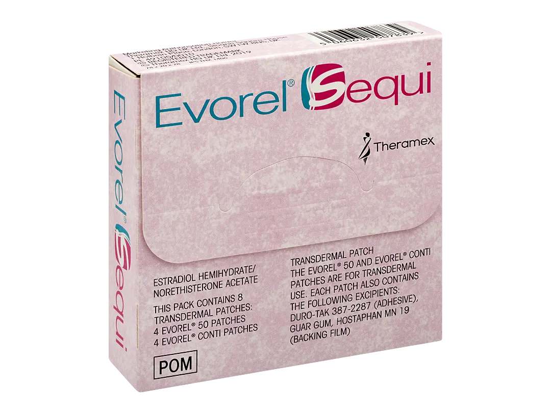 Evorel Sequi is a skin patch hormone replacement therapy (HRT) used to aid a woman’s transition into menopause. It helps treat symptoms such as: